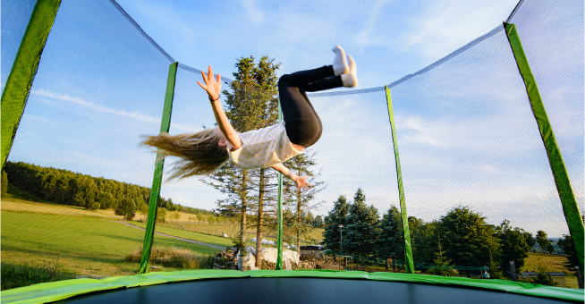 子どもに大人気のトランポリン。屋外で飛ぶ爽快感をぜひ!
