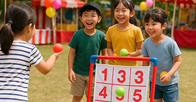 ストラックアウトやキックターゲットやバドミントン、昔懐かしの竹馬やけん玉まで様々な遊びアイテムが揃っています。