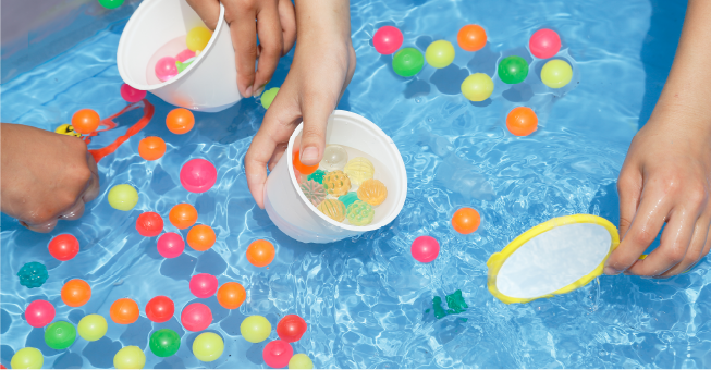 みんな大好きスーパーボールすくい!カラフルで大きさも様々。お気に入りを見つけてゲットしよう!